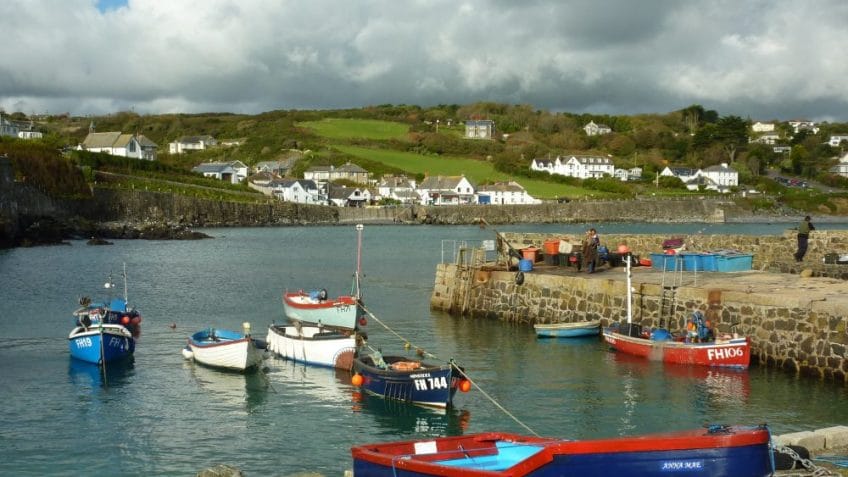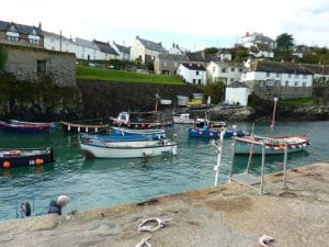 Coverack is a fishing port on the east side of the Lizard Peninsula. It has a long curved sandy beach with is great for families. At the southern end of the beach is a small harbour providing shelter for the small fishing fleet and other local boats.