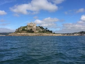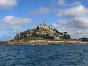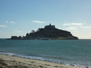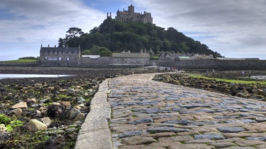 St Michaels Mount is accessed via Marazion. At low tide it is possible to walk across the causeway but at high tide it is necessary to travel to the mount by ferry.