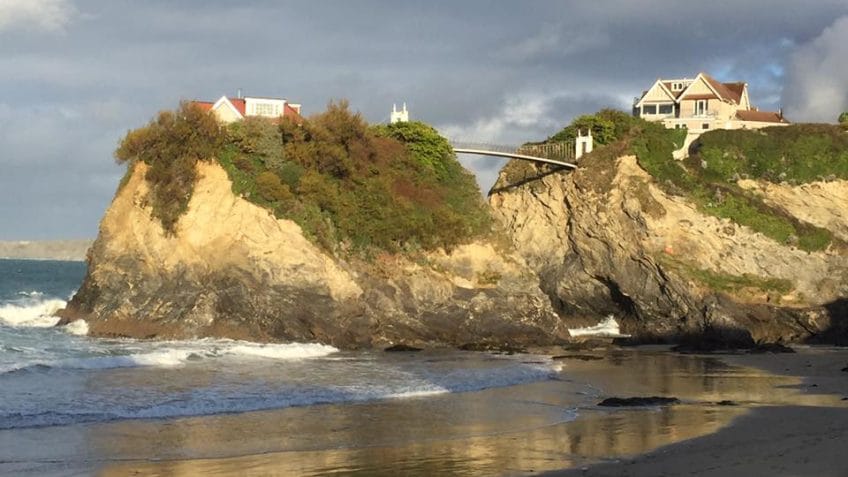 Towan Island is situated at the east end of the beach and is joined to the mainland by a small suspension bridge.