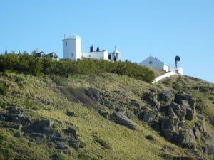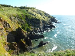 There is a lighthouse situated on the cliff at the Lizard.
