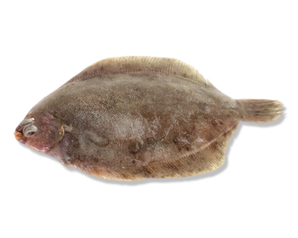 Lemon Sole is a right sided flatfish (ie eyes on right upper side) – It has a smooth upper with very small head and mouth. Brownish with darker blotches