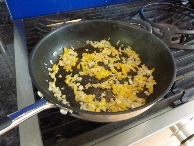 1) Finely chop a medium sized onion and saute in butter for a few minutes
